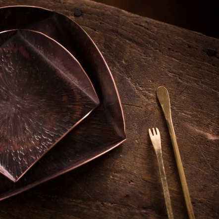 Inspired by the Zen spirit of teaware, this collection forges pure copper into sleek, architectural lines—air-like and sculptural. Floating above the tea table like a silent vessel, it transforms the tea space into a scene of imagination.