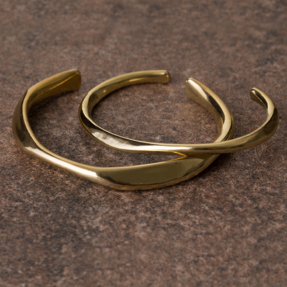 因手工製作,每只角度與尺寸與表面氧化會有些微差異,氧化層也因配戴有不同磨光效果,更顯設計雕塑感