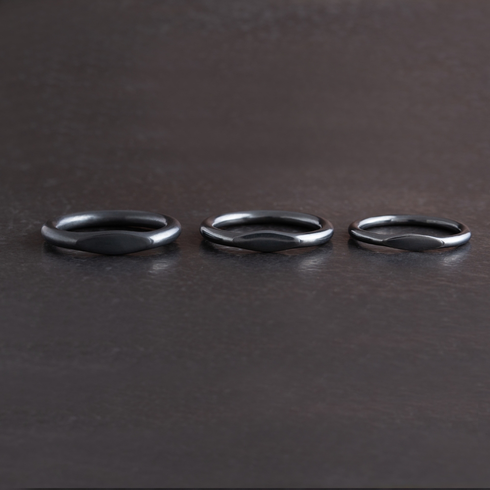 因手工製作,每只角度與尺寸與表面氧化會有些微差異,氧化層也因配戴有不同磨光效果,更顯設計雕塑感