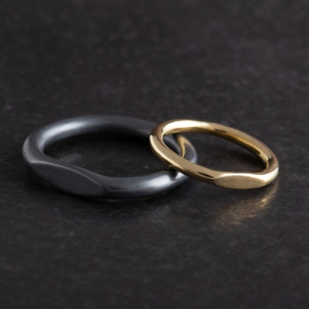 因手工製作,每只角度與尺寸與表面氧化會有些微差異,氧化層也因配戴有不同磨光效果,更顯設計雕塑感