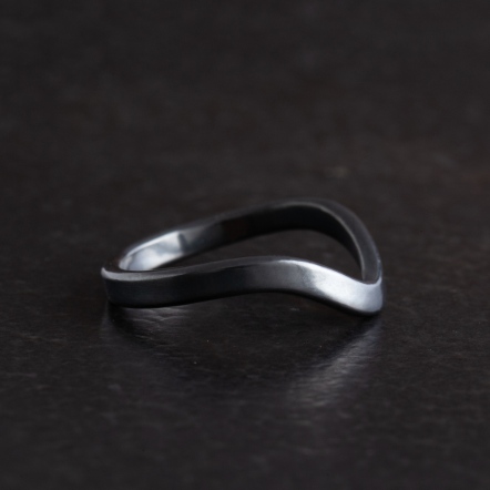 因手工製作,每只角度與尺寸與表面氧化會有些微差異,氧化層也因配戴有不同磨光效果,更顯設計雕塑感