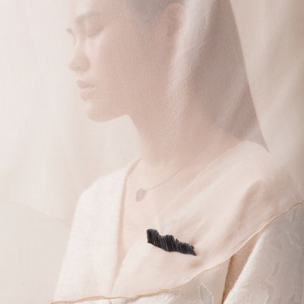 配戴於胸前,似山又似水,無論是橫向直向地穿戴方式,各有不同風景,想像萬千。
