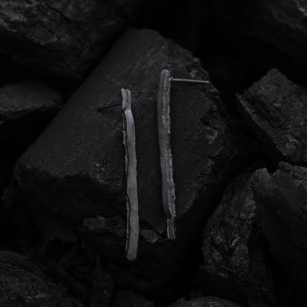Each piece is a living canvas. Oxidized silver matures over time, much like calligraphy ink shifting on paper. The deep tones, matte gradients, and spatial compositions mirror the contrast between black and white, fullness and void, presence and pause.
