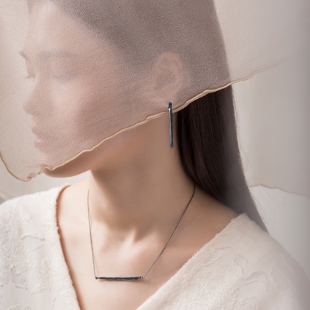 Earrings, Necklace: derived from press-and-hold strokes that create rhythm and breath.