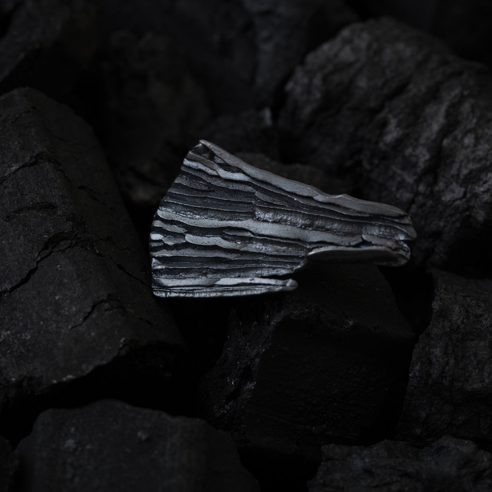 Each piece is a living canvas. Oxidized silver matures over time, much like calligraphy ink shifting on paper. The deep tones, matte gradients, and spatial compositions mirror the contrast between black and white, fullness and void, presence and pause.