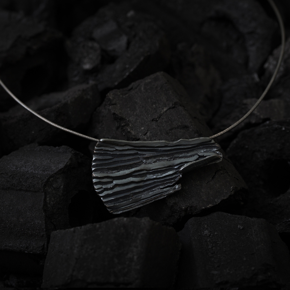 Each piece is a living canvas. Oxidized silver matures over time, much like calligraphy ink shifting on paper. The deep tones, matte gradients, and spatial compositions mirror the contrast between black and white, fullness and void, presence and pause.