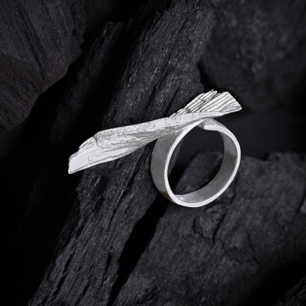 Each piece is a living canvas. Oxidized silver matures over time, much like calligraphy ink shifting on paper. The deep tones, matte gradients, and spatial compositions mirror the contrast between black and white, fullness and void, presence and pause.