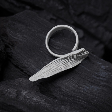 墨摺,起于在浸潤墨的筆刷與紙張中探索,把蒼勁的運筆,轉、折、頓、行、縱、挫,這些書寫藝術的筆觸在空間中運行的樣子,抽象的化作立體肌理摺理,長出筆墨線條書法之美的層層力量。 墨摺用當代的語言詮釋古典書法的筆墨內涵。 探討以金工首飾重現墨韻,呼應書法文字橫竪的結構;運筆的節奏;墨的顏色;書寫空間的餘白;濃濕墨痕的肌理,運用書法中的虛實相對、破除框架等筆法線條,與氧化銀的濃淡呈色、線性結構、凹凸肌理對照呼應,以時間文化與環境溫濕度的積累,創造出更多配戴的想像。