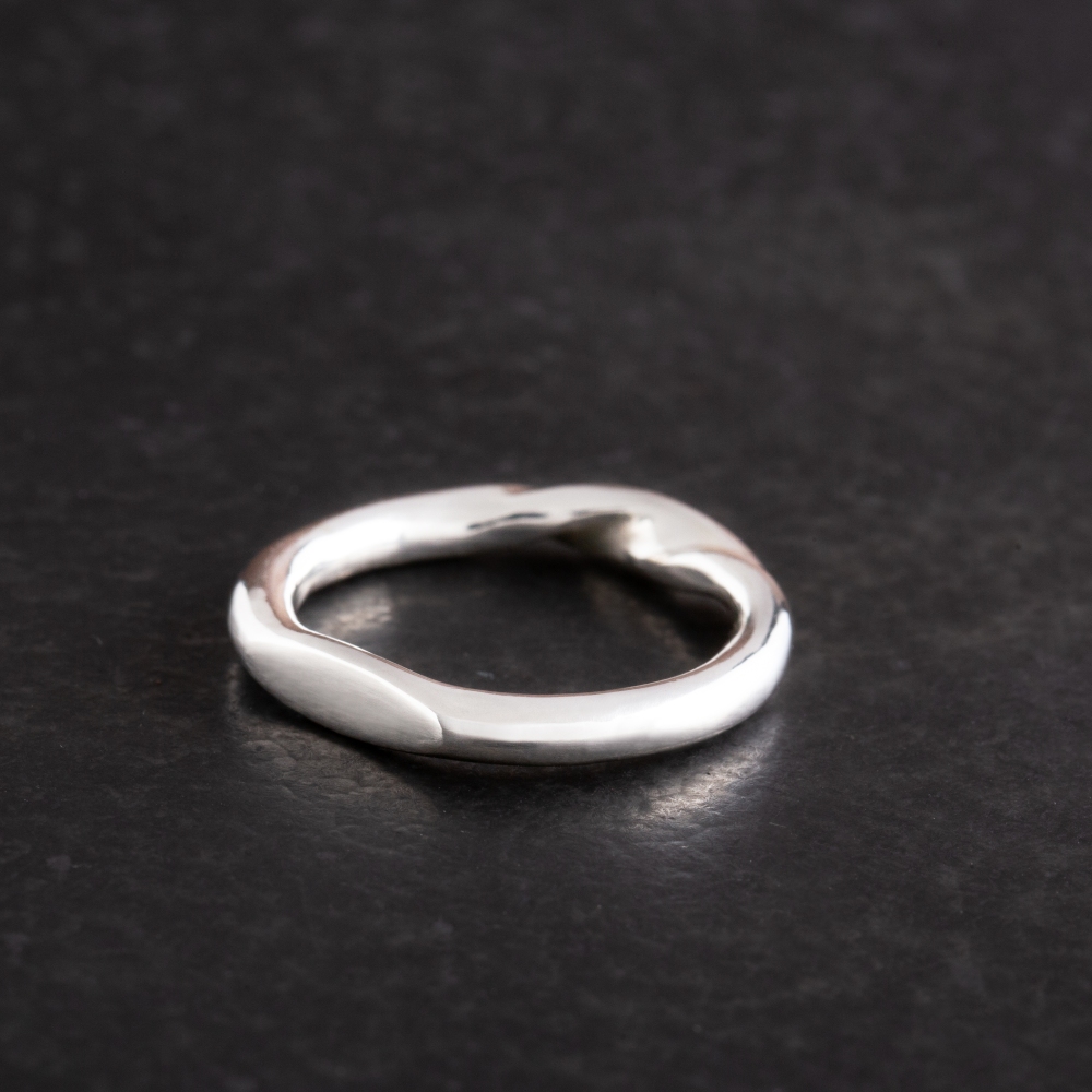 因手工製作,每只角度與尺寸與表面氧化會有些微差異,氧化層也因配戴有不同磨光效果,更顯設計雕塑感