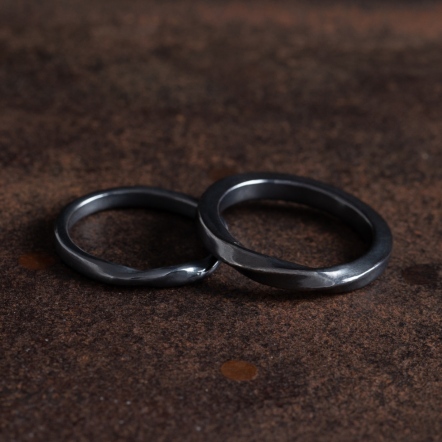 因手工製作,每只角度與尺寸與表面氧化會有些微差異,氧化層也因配戴有不同磨光效果,更顯設計雕塑感