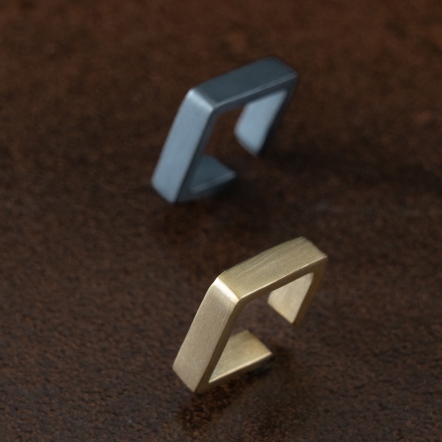 因手工製作,每只角度與尺寸與表面氧化會有些微差異,氧化層也因配戴有不同磨光效果,更顯設計雕塑感