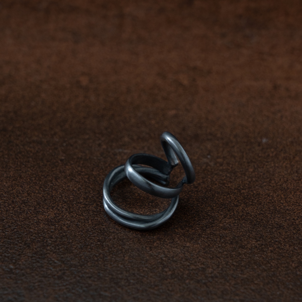 因手工製作,每只角度與尺寸與表面氧化會有些微差異,氧化層也因配戴有不同磨光效果,更顯設計雕塑感
