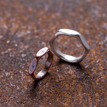 每件作品皆由工藝師親手鍛敲六面稜線,透過微差間的節奏,映現人手與金屬之間的溫度與張力。六面體廣泛存在於蜂巢、晶體、雪花,是自然中最神奇且完美的平衡結構,在我們的設計中,也代表堅定、對等與默契。 線條簡約,卻具有精確的個性,深受自由配戴者喜愛,更在日本東京市場中表現出色。
