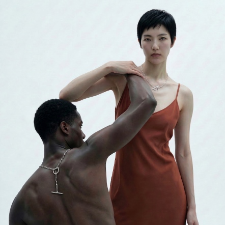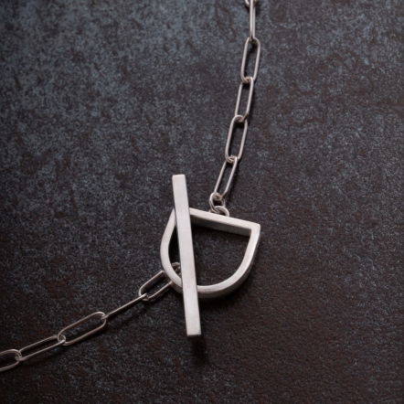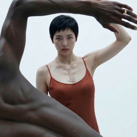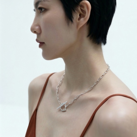 Through precise calculations of length and gravity, the T-necklace from our LOGO T Series achieves a pure structure—free from traditional clasps.