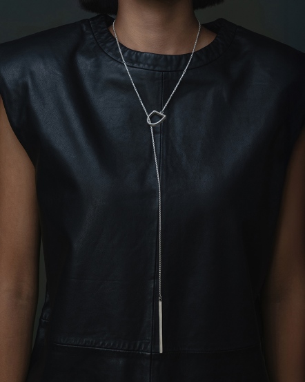 Designed for fluid styling, this Y-shaped necklace can be worn long, short, forward, or sideways. Order becomes freedom. The form mirrors our emblem: a circle with internal angles, expressing balance between flow and structure.