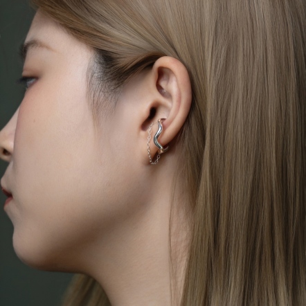 設計取形於水紋、波浪與海藻的律動線條,以精準手工打磨出貼合耳際的銀色結構,讓每一次佩戴,都如同傾聽海的低語,與內在節奏同步。