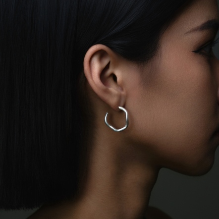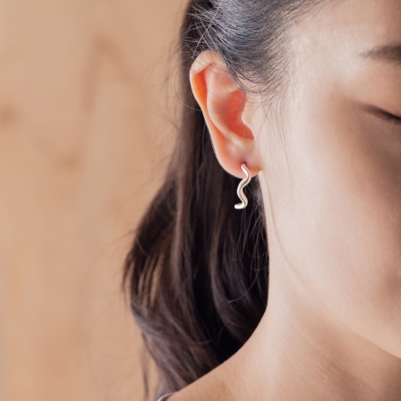 設計取形於水紋、波浪與海藻的律動線條,以精準手工打磨出貼合耳際的銀色結構,讓每一次佩戴,都如同傾聽海的低語,與內在節奏同步。