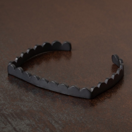 因手工製作,每只角度與尺寸與表面氧化會有些微差異,氧化層也因配戴有不同磨光效果,更顯設計雕塑感