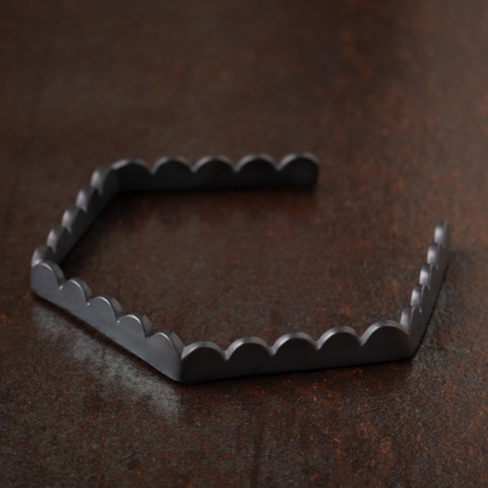 因手工製作,每只角度與尺寸與表面氧化會有些微差異,氧化層也因配戴有不同磨光效果,更顯設計雕塑感
