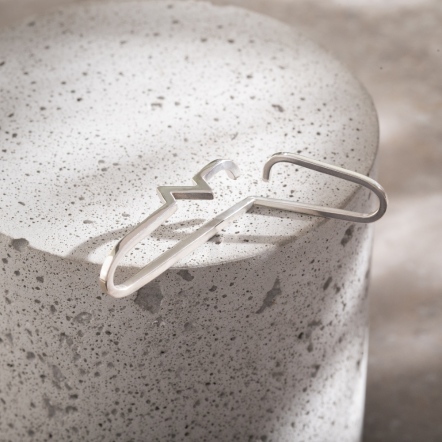 因手工製作,每只角度與尺寸與表面氧化會有些微差異,氧化層也因配戴有不同磨光效果,更顯設計雕塑感