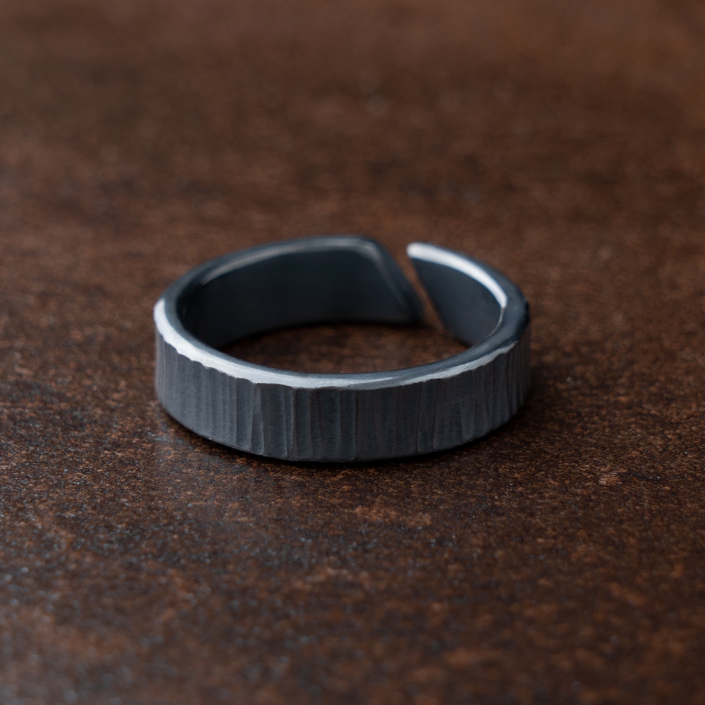 Open HammeredHead Woodgrain Pattern Ring 5-6mm 樹紋 斜口 戒指 寬版
