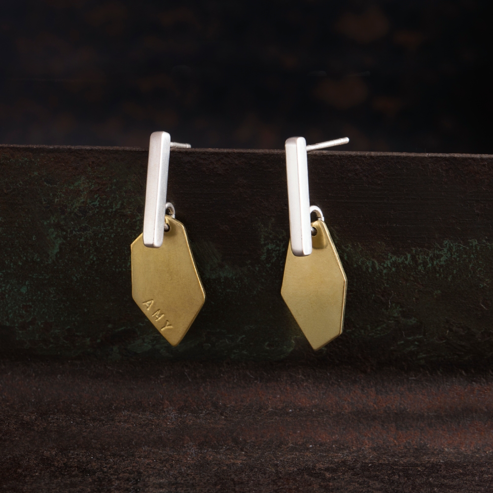 Ore Earrings Dual-Tone 礦石耳環 星河銀拼接黃銅
