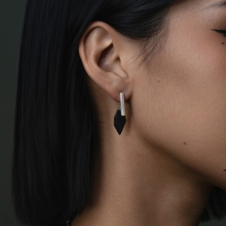 如同原礦般的結晶剪影,以手工切割打磨,成為耳際間的獨特寶藏。每件皆呈現不同的礦石原形切面,自然擺動間展現率性與力量。