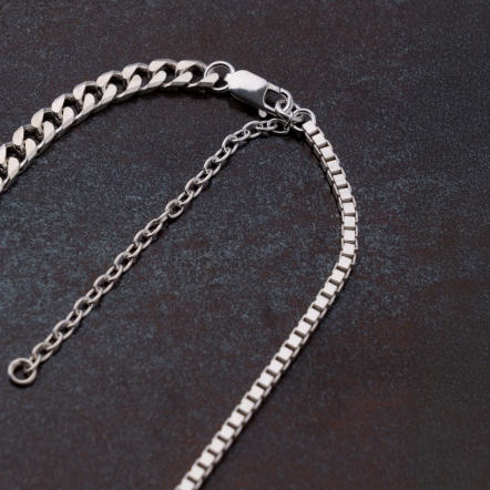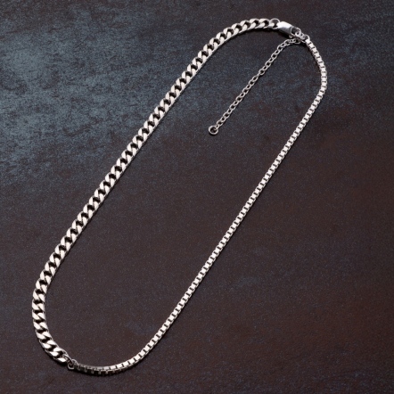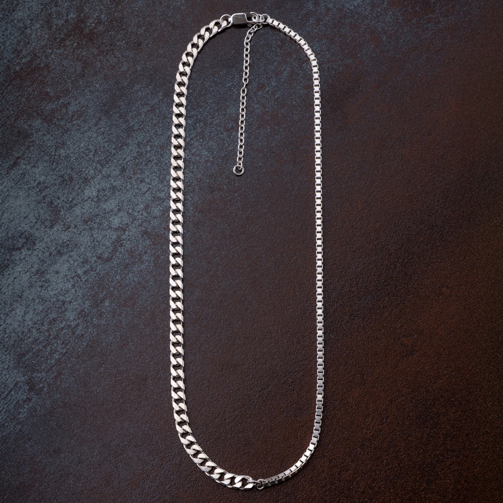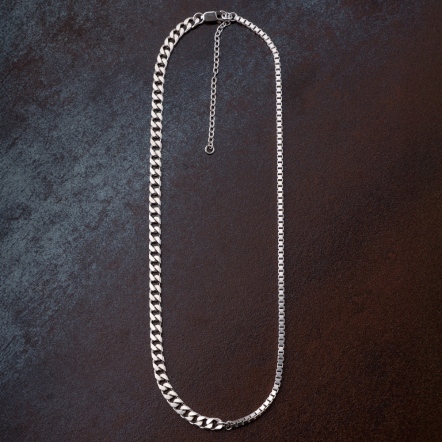 兩雙拼接的極簡鍊條象徵了這些風格的融合,而迷霧灰的做舊質感透過自然氧化呈現出歲月的痕跡,皆有兩種顏色:迷霧灰 / 星河銀 ,讓每款項鍊擁有深邃且神秘的氛圍。
