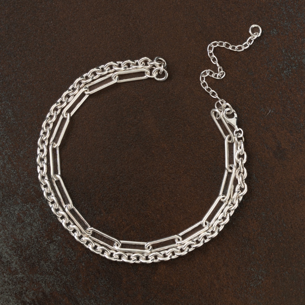 The dual minimalist chains symbolize the fusion of styles, while the oxidized mist-grey finish gives each piece a deep, timeworn character.