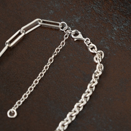 This Handcrafted sterling silver necklace series draws from the diverse spirit of rock — from punk’s rebellion to metal’s power, grunge’s detachment, and electro-blues’ melancholy.