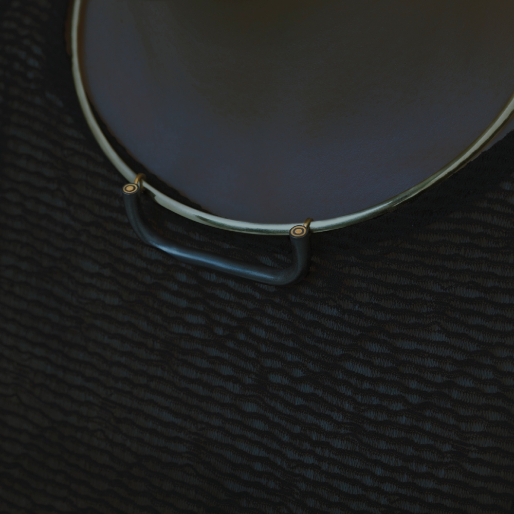 採用自然金屬,融合當代鎔接與古老木目金技藝,製程極其繁複,充滿高度工藝性。作品經過極致氧化後,於穿戴過程中與肌膚油脂產生逆向作用,漸漸還原出原始銅色——反轉我們對金屬「氧化」的時間觀,讓時間成為再生的催化。