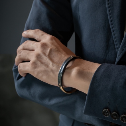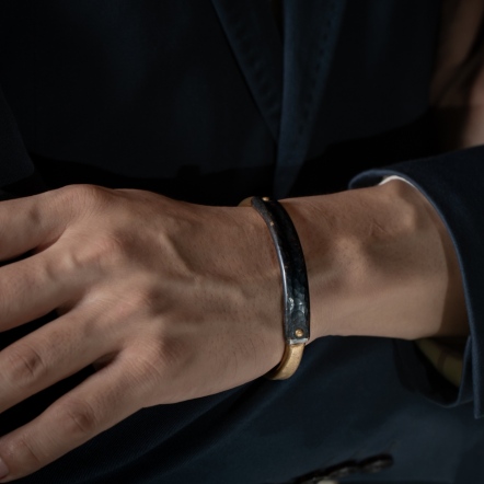 因手工製作,每只角度與尺寸與表面氧化會有些微差異,氧化層也因配戴有不同磨光效果,更顯設計雕塑感