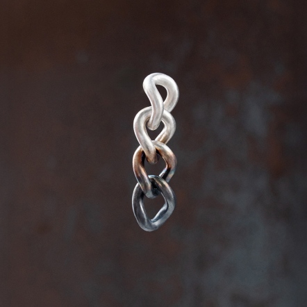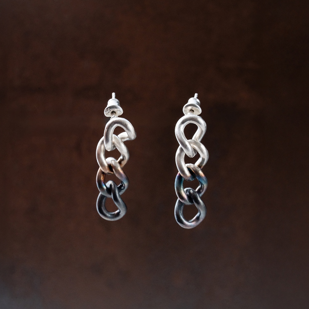 The dual minimalist chains symbolize the fusion of styles, while the oxidized mist-grey finish gives each piece a deep, timeworn character.