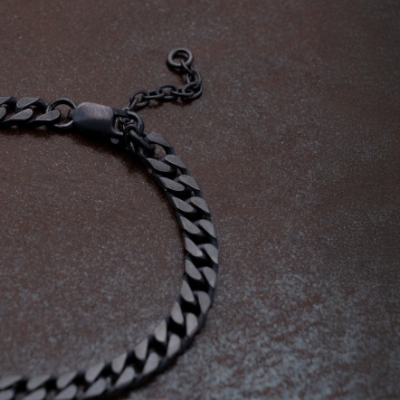 The dual minimalist chains symbolize the fusion of styles, while the oxidized mist-grey finish gives each piece a deep, timeworn character.