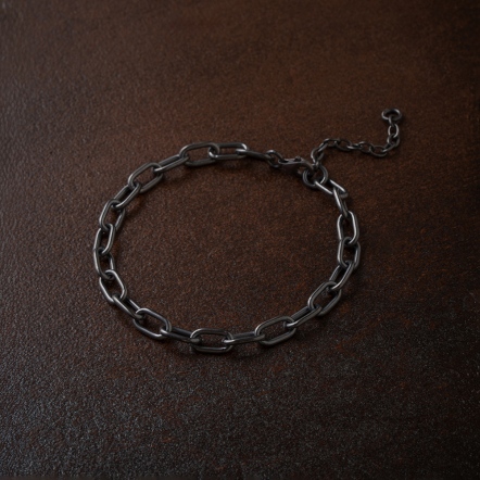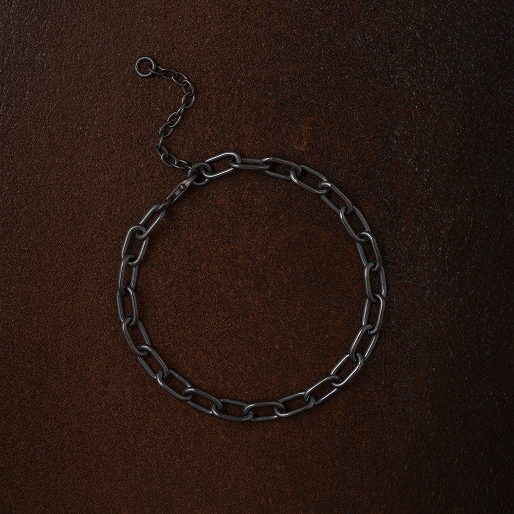 The dual minimalist chains symbolize the fusion of styles, while the oxidized mist-grey finish gives each piece a deep, timeworn character.