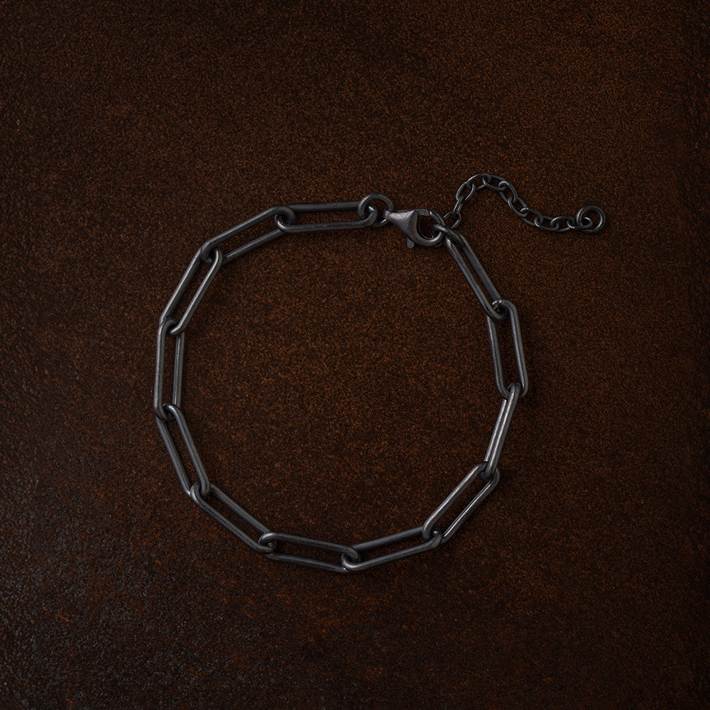 The dual minimalist chains symbolize the fusion of styles, while the oxidized mist-grey finish gives each piece a deep, timeworn character.