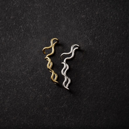 設計取形於水紋、波浪與海藻的律動線條,以精準手工打磨出貼合耳際的銀色結構,讓每一次佩戴,都如同傾聽海的低語,與內在節奏同步。