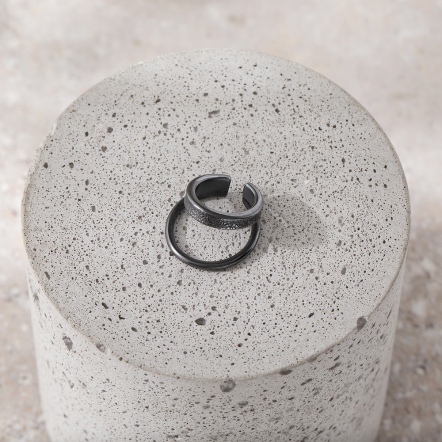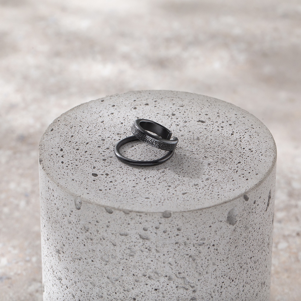 因手工製作,每只角度與尺寸與表面氧化會有些微差異,氧化層也因配戴有不同磨光效果,更顯設計雕塑感