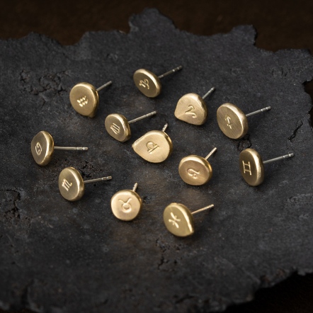 Crafted from recycled 999 silver with pure copper/brass, each piece is repeatedly fired and rolled, then steel-stamped with your zodiac sign onto a molten silver granule.